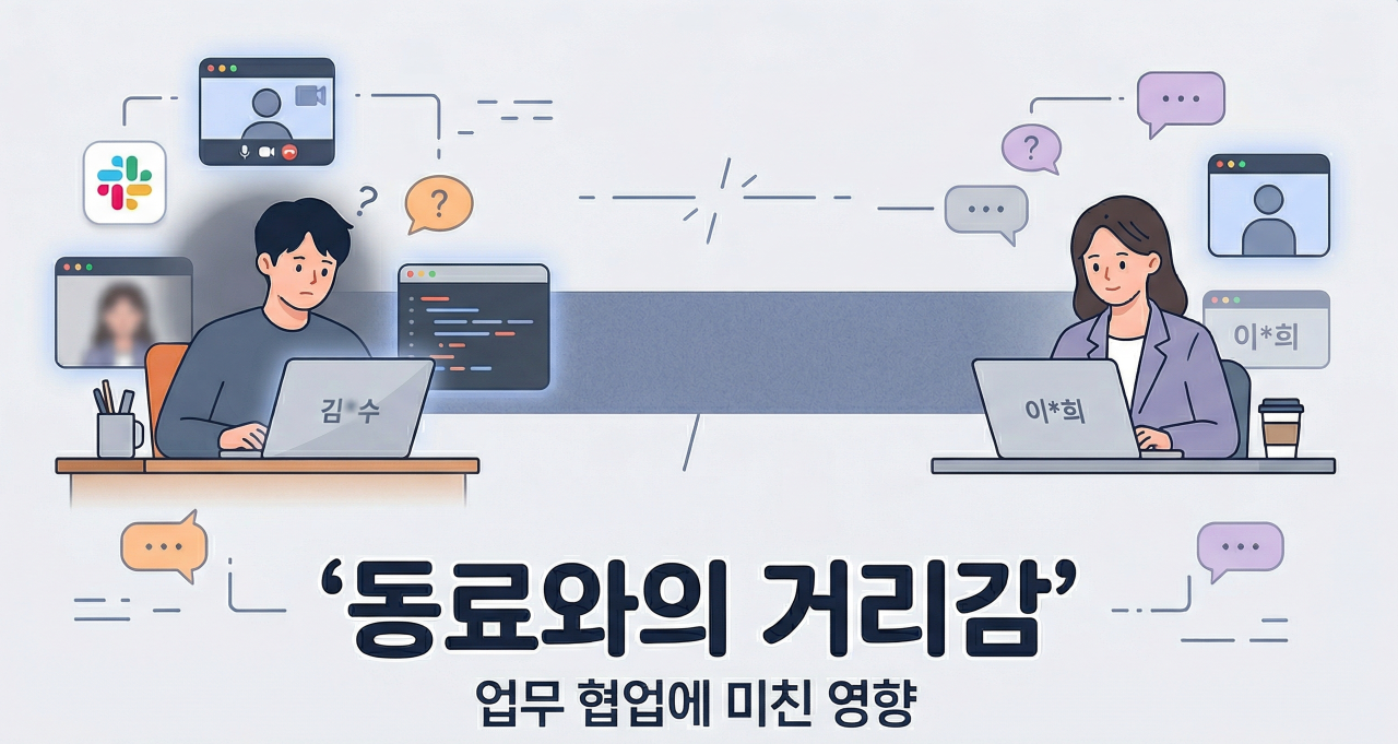 같은 팀인데 서로 이름도 제대로 모르는 경우가 있었다. 슬랙으로만 소통하고, 회의는 화상으로만 하고, 점심도 각자 먹었다. 코로나 이후 재택과 사무실 출근이 섞이면서 동료와 얼굴을 마주칠 일이 줄어들었다. 2024년 12월, 이런 거리감이 실제 업무에 어떤 영향을 미쳤는지 관찰하고 기록했다.